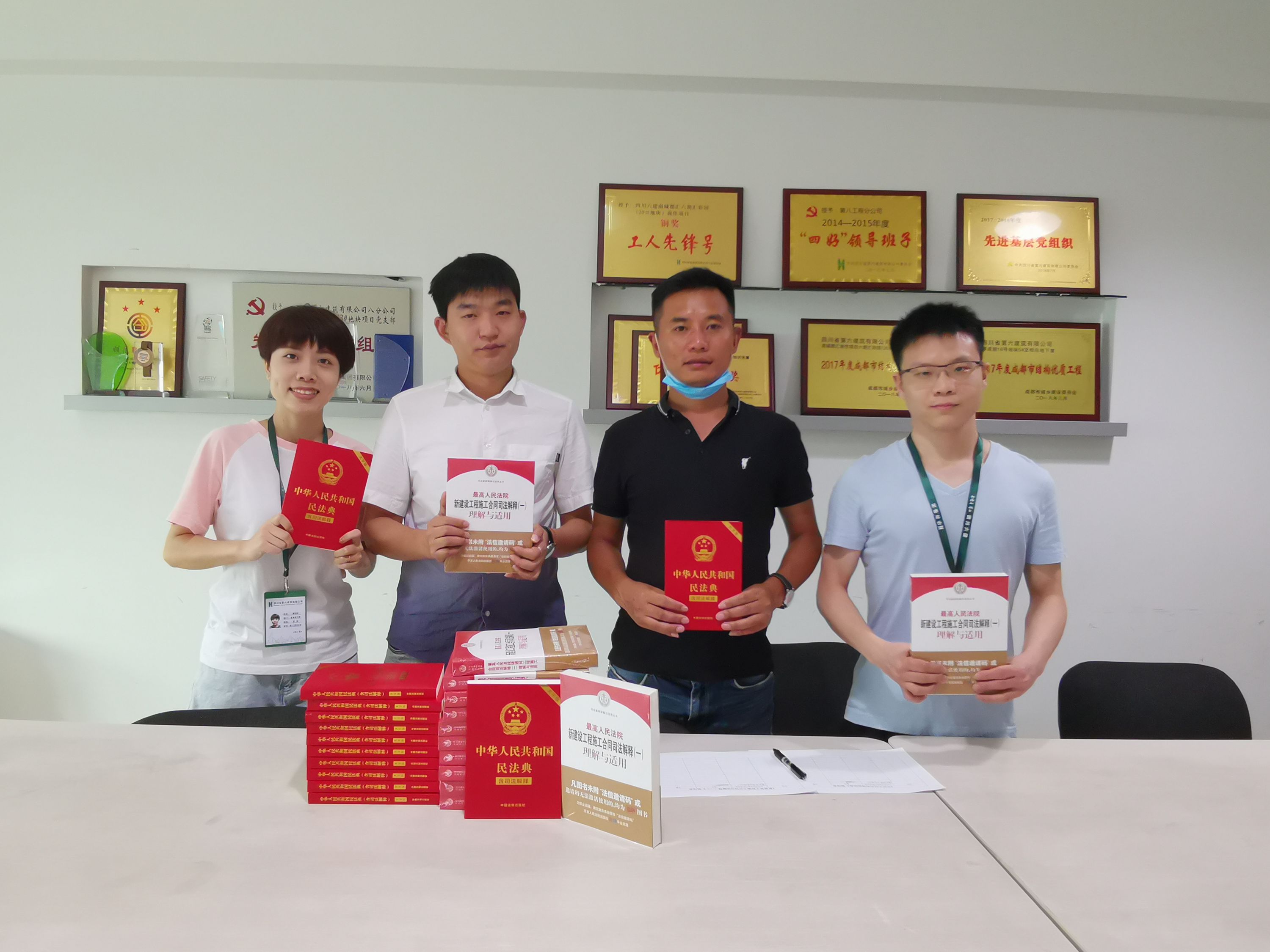 八分公司法務部門在走訪基層項目中發現,項目部在處理一些法律事務時因對建筑領域的專項法律條款不甚了解而存有疑惑。分公司立足基層項目需求,秉承為基層群眾們辦實事的服務理念,特向基層項目贈送了《民法典》和《新建工合同司法解釋一》。