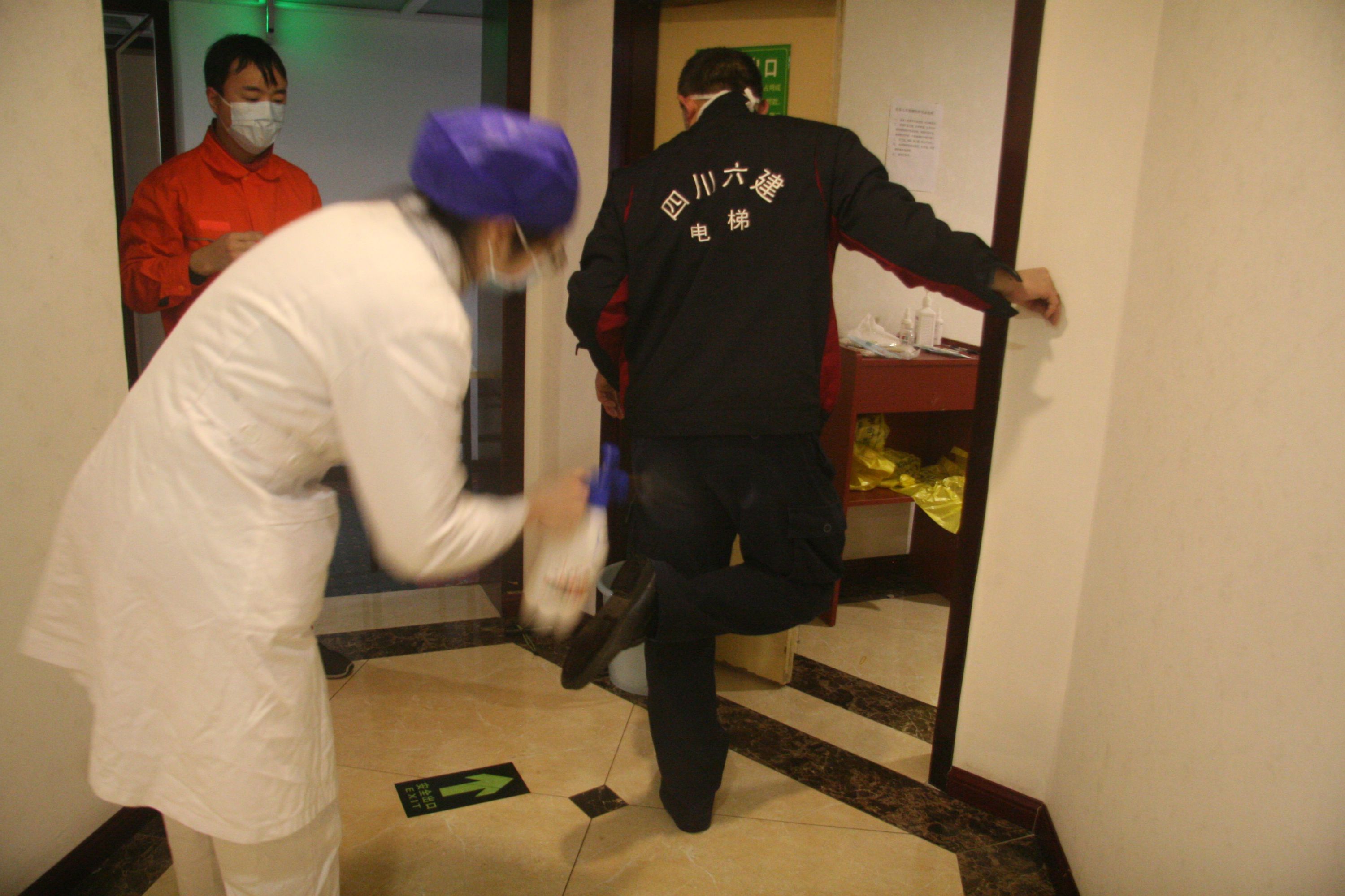 “這個拉鏈有沒有拉緊?”“檢查好了,沒有問題!”,六建電梯員工段周康、高勇兩名維保人員正在安全區相互檢查醫用防護服,這次維保任務是成都大酒店的電梯年檢工作。該酒店于1月26日被金牛區人民政府征用,作為“金牛區留置人員觀察點”,酒店內有50多名留置人員,20多名醫護人員和工作人員。為確保酒店內人員的乘梯安全以及正常生活和工作,六建電梯維保人員義無反顧,“疫”往直前,開展電梯年檢工作。