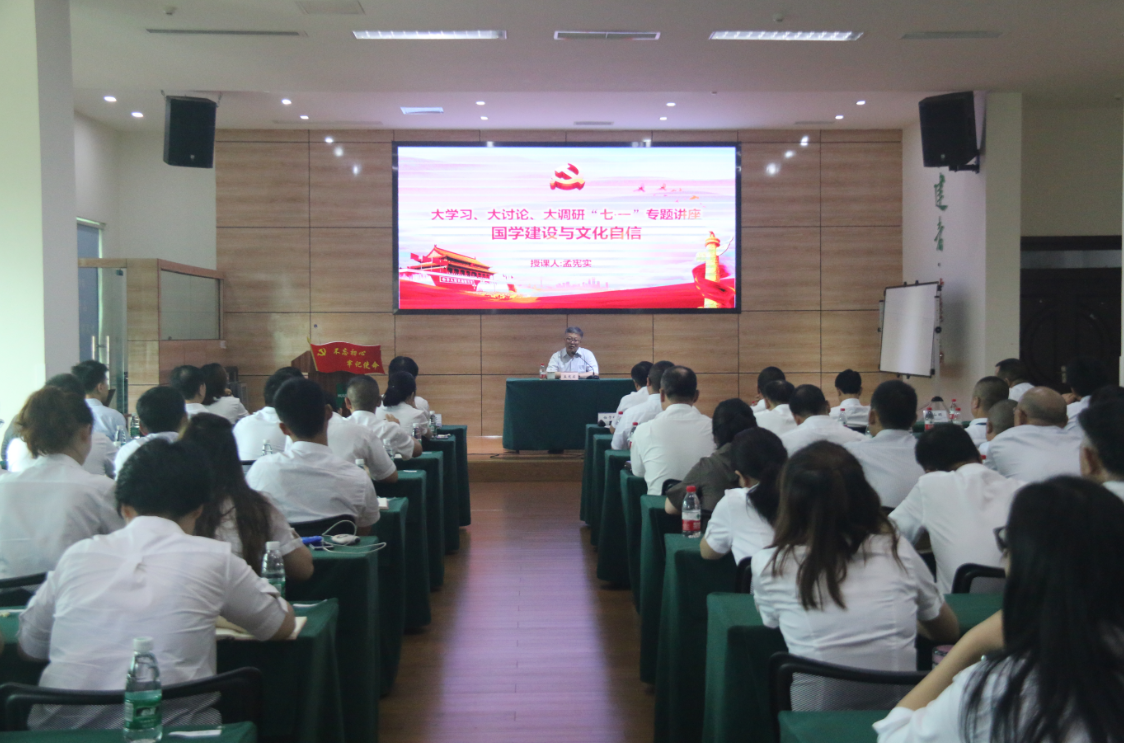 這位特別牛的孟先生應公司黨委的要求,在7月4日下午來到公司14樓活動室,以“國學建設與文化自信---家風傳承的力量”為題,做了一堂“大學習、大討論、大調研”七一專題講座。在場的120名黨員代表及四個分會場的近百名黨員聽得如癡如醉,可謂是現場版的六建“百家講壇”。