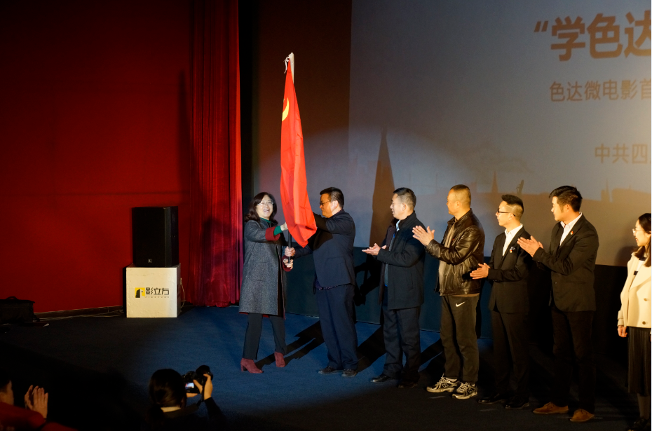 此部微電影講述的是主人公“陸建興”在色達(dá)工作、生活過程中發(fā)生的一系列故事。在首映式現(xiàn)場(chǎng),公司黨委更是設(shè)置了色達(dá)代表團(tuán)亮相環(huán)節(jié),通過分享代表團(tuán)每一名成員的親身經(jīng)歷、心路歷程及個(gè)人感悟向大家展示了這支團(tuán)隊(duì)“特別能吃苦、特別能戰(zhàn)斗”的拼搏精神,而這也正是“色達(dá)精神”最核心的內(nèi)涵。緊接著,集團(tuán)黨委副書記鐘曉同志向色達(dá)黨員突擊隊(duì)授黨旗。