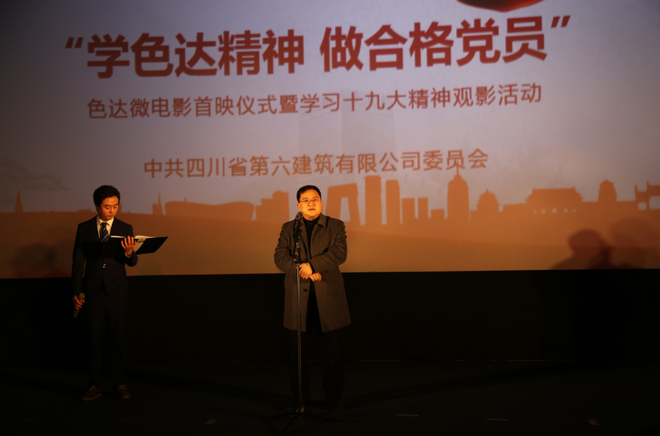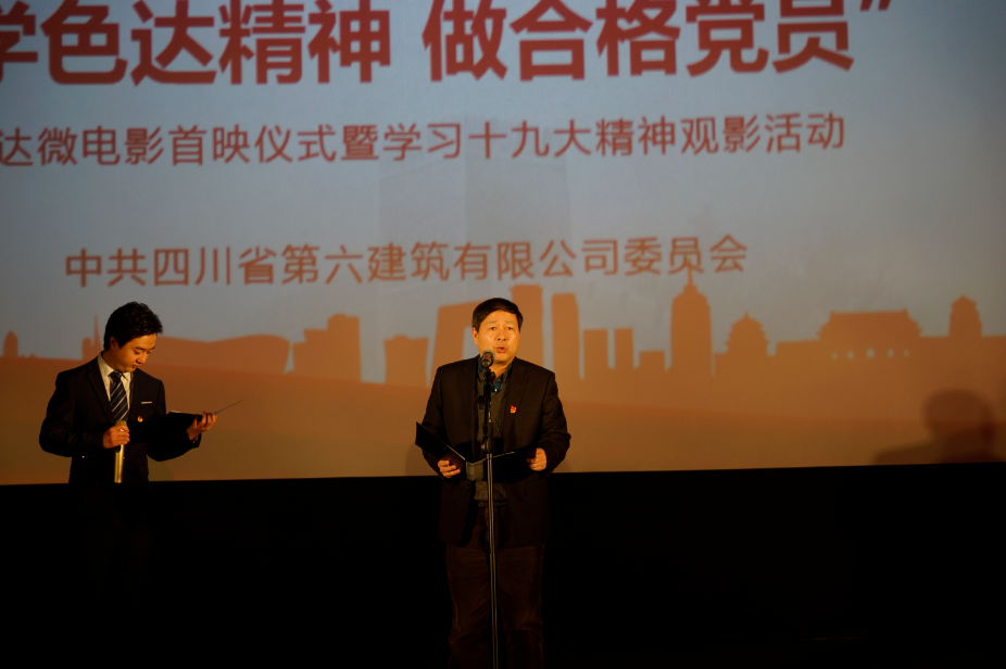 2017年12月14日,由公司黨委拍攝的“愛在六建”系列第二部微電影《色達(dá) 愛你在4000米高原》成功舉行了首映儀式,集團(tuán)黨委副書記鐘曉為色達(dá)黨員突擊隊(duì)授旗,集團(tuán)副總經(jīng)理、康定災(zāi)后重建總指揮長(zhǎng)萬曉林發(fā)表重要講話,集團(tuán)相關(guān)部門及公司領(lǐng)導(dǎo)出席此次活動(dòng),公司黨委書記、董事長(zhǎng)任予鋒同志致活動(dòng)開幕詞。
