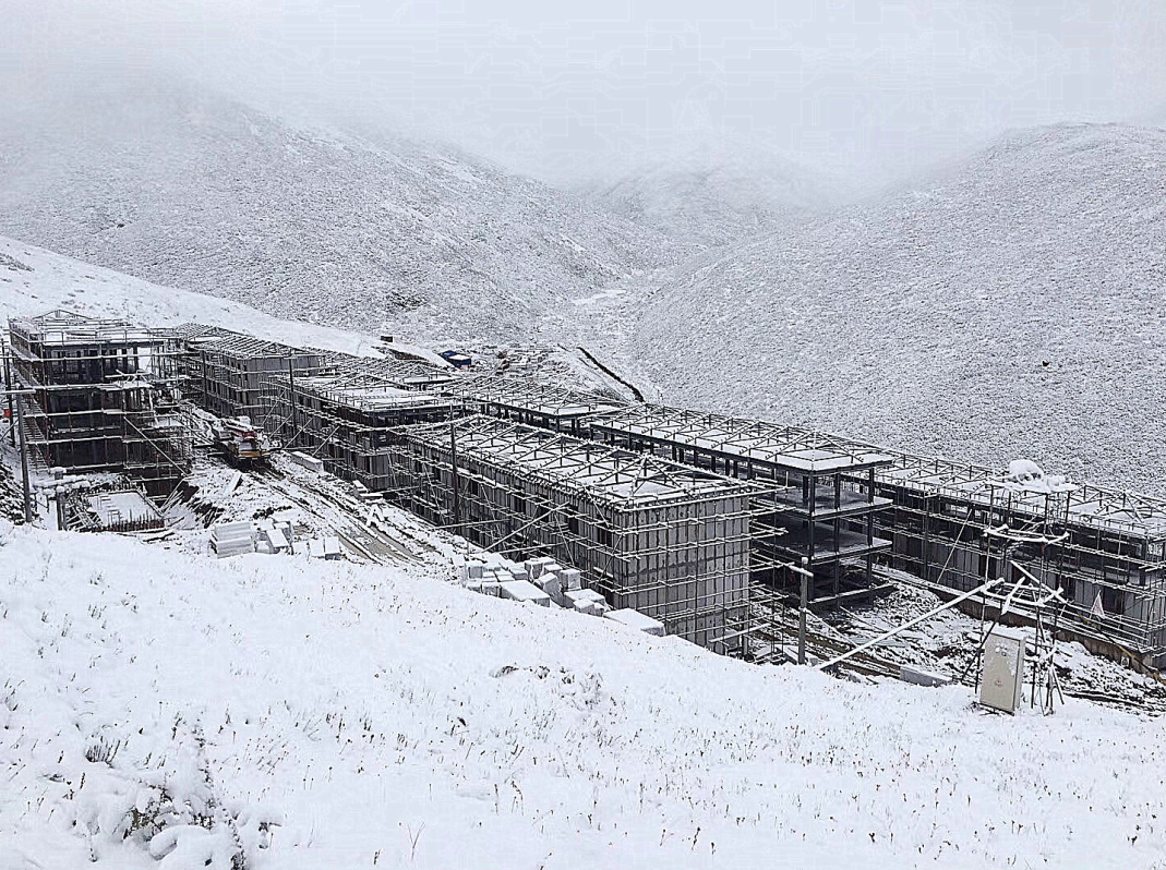 冬季來臨,色達高原晝夜溫差更加劇烈,早上10點鐘之前氣溫均在零度以下,連生活用水都被冰凍,工人有效作業(yè)時間急劇減少。10月28日,色達縣建設(shè)局正式下達2017年度冬季停工令,工程項目所有涉水作業(yè)全部停止。項目部制定了冬季施工方案,克服各種氣候不利因素,仍在施工可以作業(yè)的施工內(nèi)容:如墻板安裝、屋面彩瓦安裝、門窗安裝、外墻界面作業(yè)、場內(nèi)道路整治等,堅持施工至11月底,計劃在天氣允許情況下繼續(xù)施工。為確保盡早全面交付,完成省委省政府交辦的任務(wù)盡最大的努力。