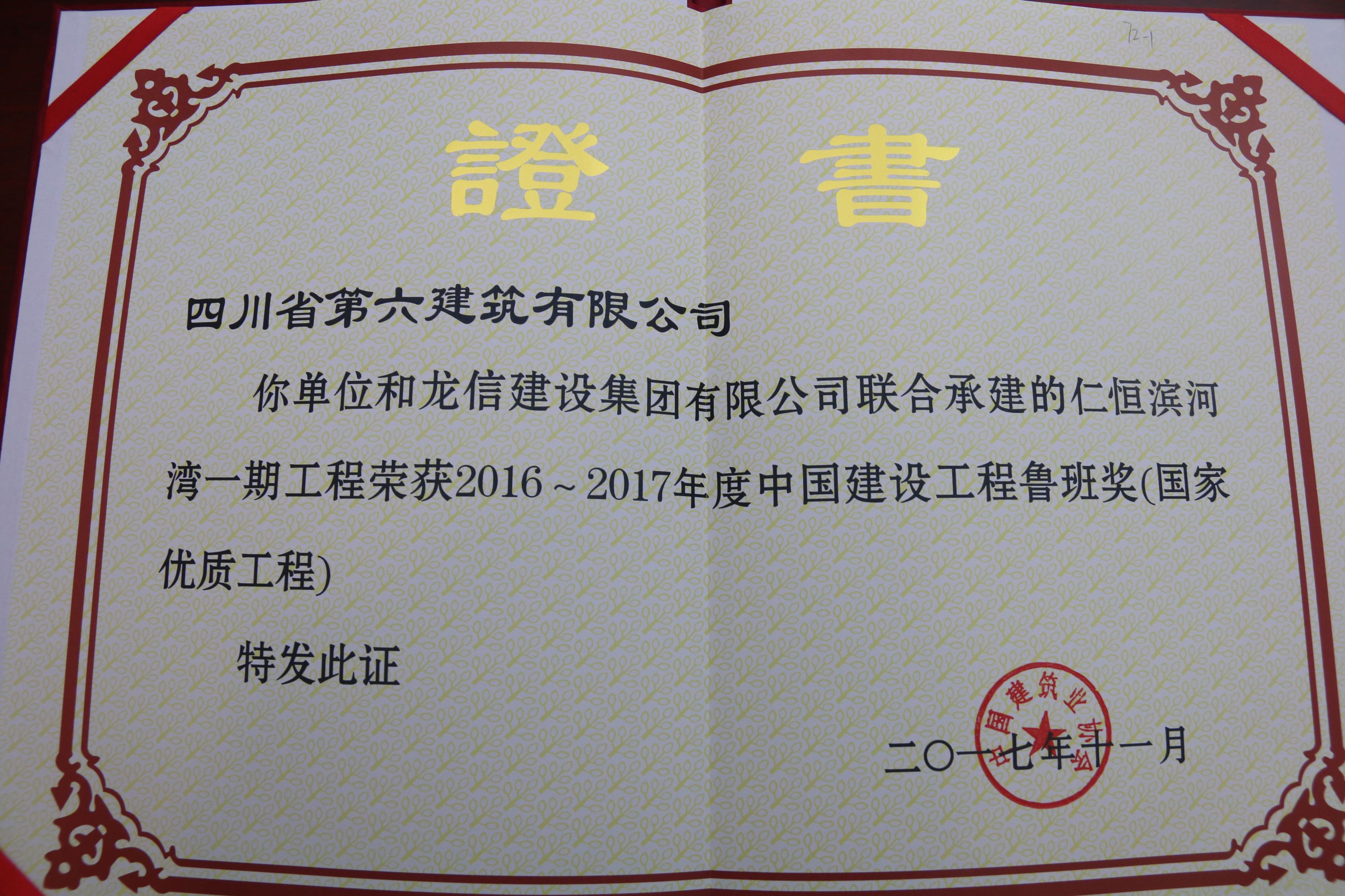 會上,頒發(fā)了2016 ~ 2017年度魯班獎證書和魯班金像,由二分公司承建的仁恒濱河灣一期工程獲此殊榮。仁恒濱河灣項目位于成都市錦江區(qū)二環(huán)路東四段外側(cè),東臨沙河景觀帶,正對塔子山公園,北臨市政公園和規(guī)劃中學(xué),南邊是成都環(huán)球貿(mào)易廣場。該區(qū)域也是中心城區(qū)內(nèi)集高端商業(yè)商務(wù)、住宅社區(qū)為一體的大型片區(qū)。項目建筑面積約66000㎡(含地下室建筑),由3棟獨立塔式高層住宅組成,建筑高度約為99m,6棟住宅為27層居住建筑,建筑高度約為89m,地下一層,局部二層。在施工各責(zé)任主體的積極配合下,結(jié)合工程建筑、結(jié)構(gòu)及各系統(tǒng)的設(shè)計特點,本工程推廣應(yīng)用了十新技術(shù)中的混凝土技術(shù)、鋼筋及預(yù)應(yīng)力技術(shù)、模板及腳手架技術(shù)等8大項16子項新技術(shù),其他創(chuàng)新技術(shù)1項,并榮獲了2013年度全國工程建設(shè)優(yōu)秀QC小組活動成果二等獎。該工程交付業(yè)主使用后,獲得業(yè)主的高度評價。