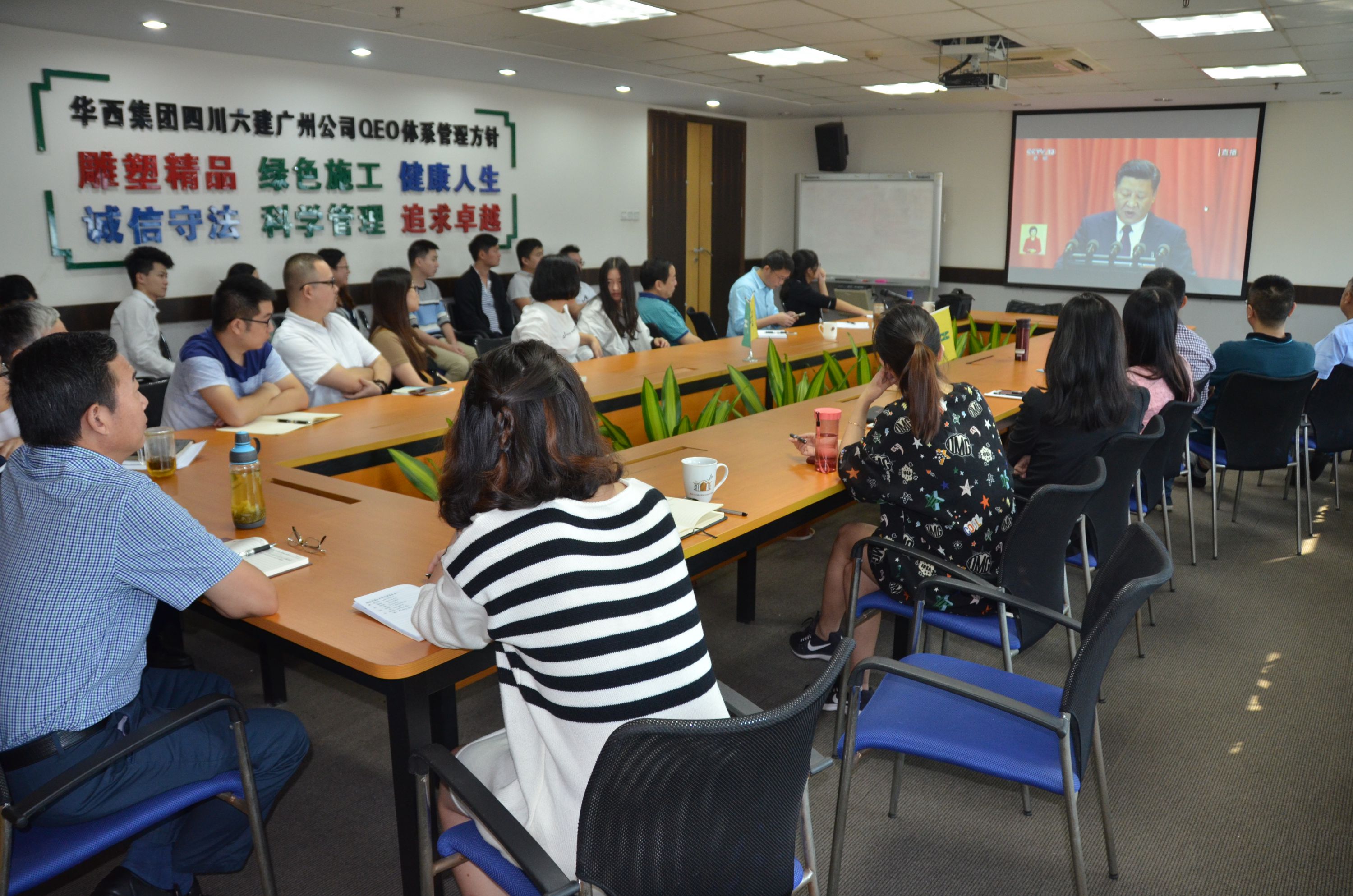 回顧過往,展望未來!伴隨著黨的十九大盛大開幕,在公司黨委的統一安排下,公司機關黨總支組織公司機關共計約70余名員工在公司14樓多功能室進行觀看、學習,各分公司黨總支及色達項目部、和黃項目部等各直屬黨支部設立分場組織員工進行觀看“中國共產黨第十九次全國代表大會”開幕式,并認真聽取、學習習近平總書記所做的題為《決勝全面建成小康社會 奪取新時代中國特色社會主義偉大勝利》的報告。