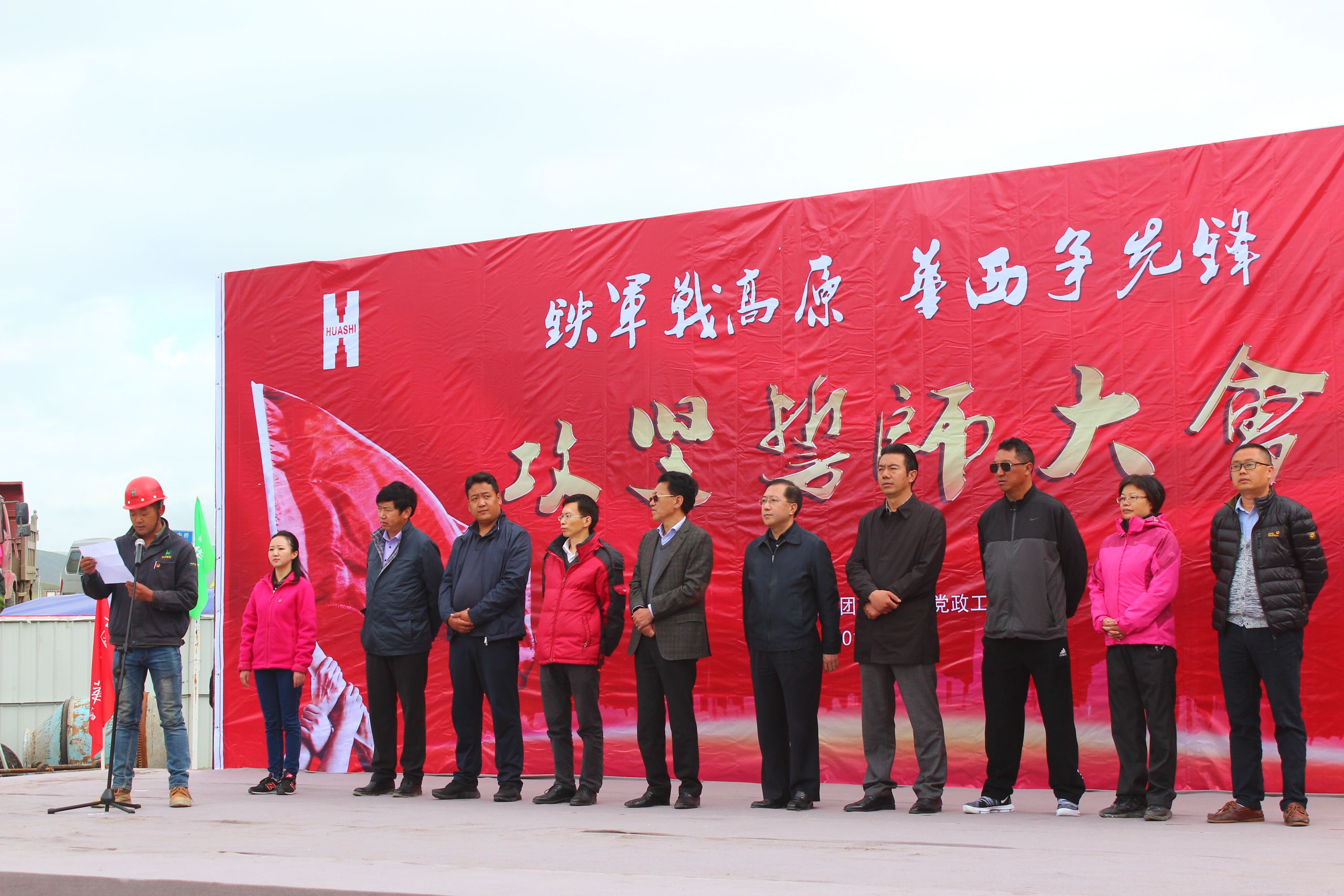 集團黨委工作部代小龍同志宣布色達洛若撤鄉(xiāng)建鎮(zhèn)系列工程成功建設黨員突擊隊、爭創(chuàng)工人先鋒號、爭創(chuàng)青年突擊隊,并由參會領導為其授旗。黨員突擊隊、爭創(chuàng)工人先鋒號、爭創(chuàng)青年突擊隊隊長代表分別上臺發(fā)言。色達縣副縣長更登澤郎在大會上講到:“華西集團這次在色達洛若撤鄉(xiāng)建鎮(zhèn)項目指揮部舉辦的誓師大會意義非常好,在最攻堅的時刻,希望華西人要‘保質量、保安全、保工期’的完成每一項施工任務,確保順利的完成‘10.20’節(jié)點各項建設工作,完成省委省政府下達的任務。”