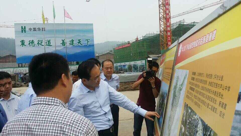 王寧副省長在仔細聽取匯報后,視察了項目施工現場。他詳細詢問了城房建設的分配事宜,希望重建各方精誠合作,給老百姓們交一份滿意的答卷,讓災區人民早日安居樂業。王寧副省長強調,要按照已明確的時間節點,著力推動既定目標任務的如期完成。要合理組織安排,著力推動規劃任務的有序實施,進一步加強對薄弱環節的督促指導。要堅持問題導向,著力推動出現問題的協調解決,確保重建工作整體有序推進。要加強監測預警,著力推動汛期安全度汛工作的落實,突出抓好防范地質災害的應急演練。王寧副省長在災后重建工作任重道遠,華西集團在保證質量安全的前提下,要加快施工進度,保證節點工期,確保重建工作按時完成,在災后重建中起到標桿作用。