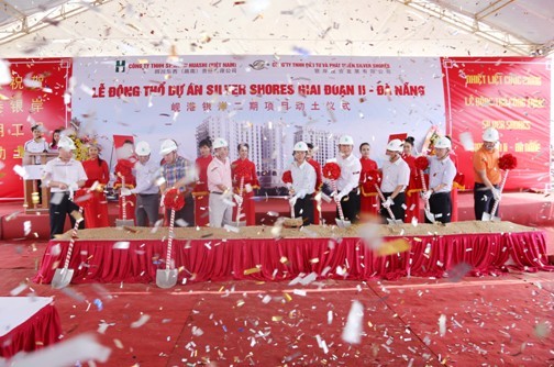 參加動土儀式的嘉賓還有峴港市副市長黃義先生,銀岸投資發展集團董事長許崗先生、銀岸峴港酒店總經理姚建偉先生、副總經理梁明毅先生、副總經理徐春先生、工程總監馬躍光先生等。