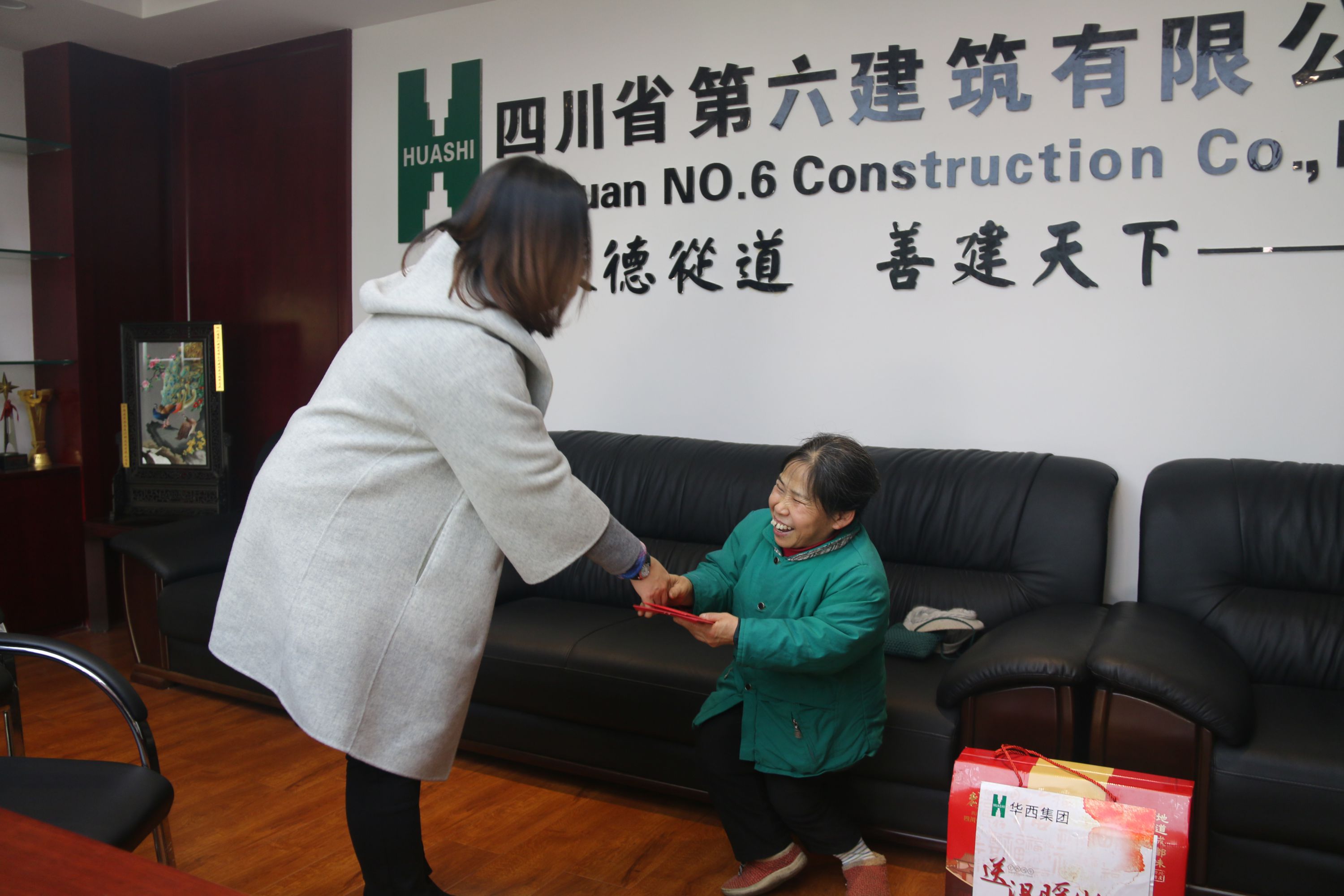 六公司紀委書記、工會主席趙尤蕾向困難職工送上春節慰問金