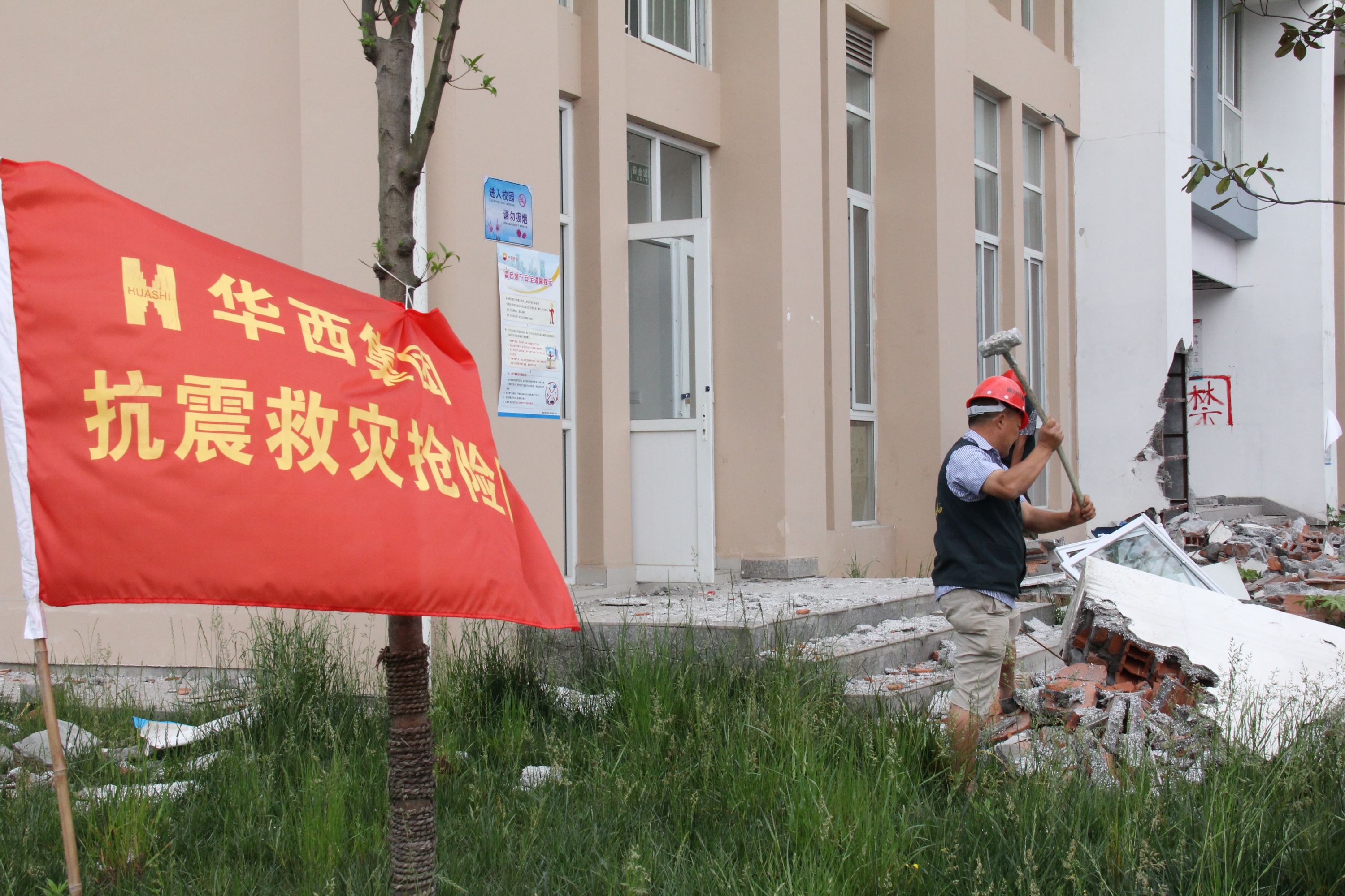 公司搶險隊在北川中學搶險救災